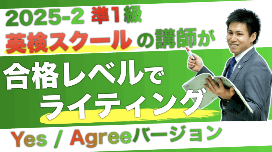 英検®動画 2025年第2回『英検®準1級ライティング』YESバージョン 2025年の10月に1次試験が行われた『英検®準1級』のライティングの解説動画になります。今回はテーマに対して"YES"で書かれています。すでに英検®のホームページでは模範解答が公開されていますが、この動画では模範解答とは違うPOINTを使... 2025.10.14 英検®動画